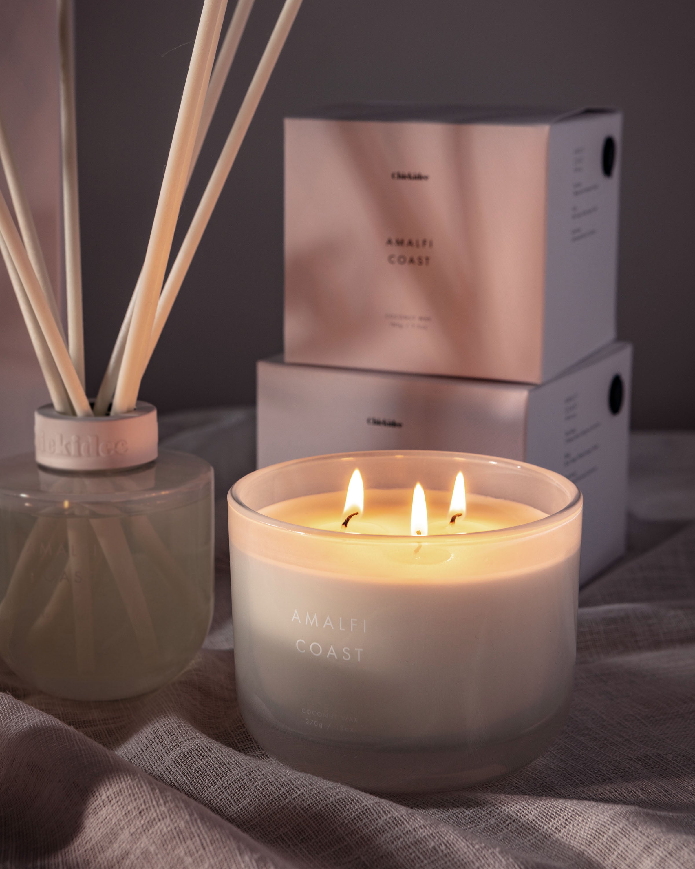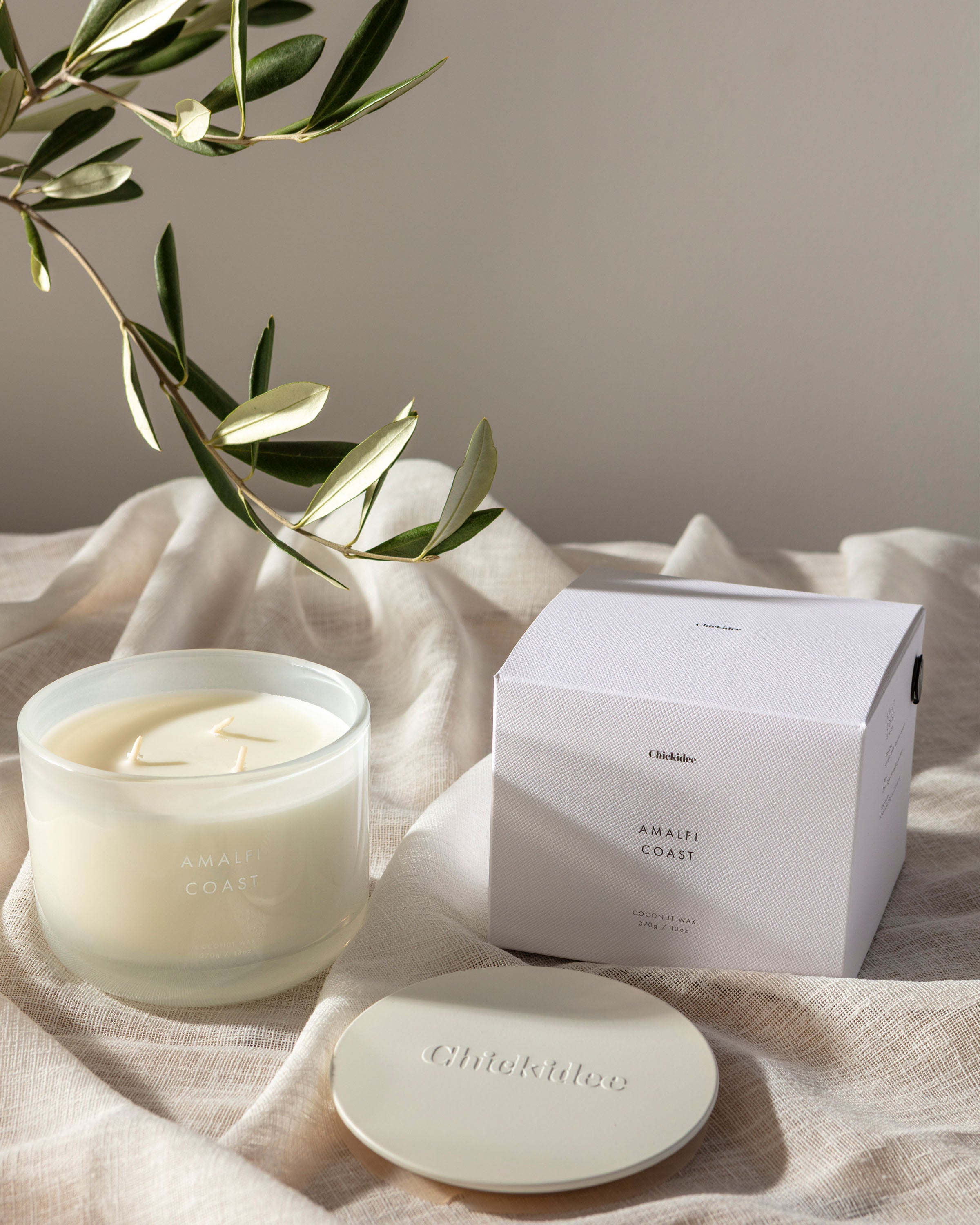 Our Chickidee Neutral Core Collection is designed with effortless style in mind. Its smooth opaque glass vessel blends seamlessly into every aesthetic and the scent throw transforms your space into a relaxing haven. Our Amalfi Coast scent energises your space and captures the warm Mediterrean air drifting through citrus groves. Crafted with three wicks for a fuller, even burn.
