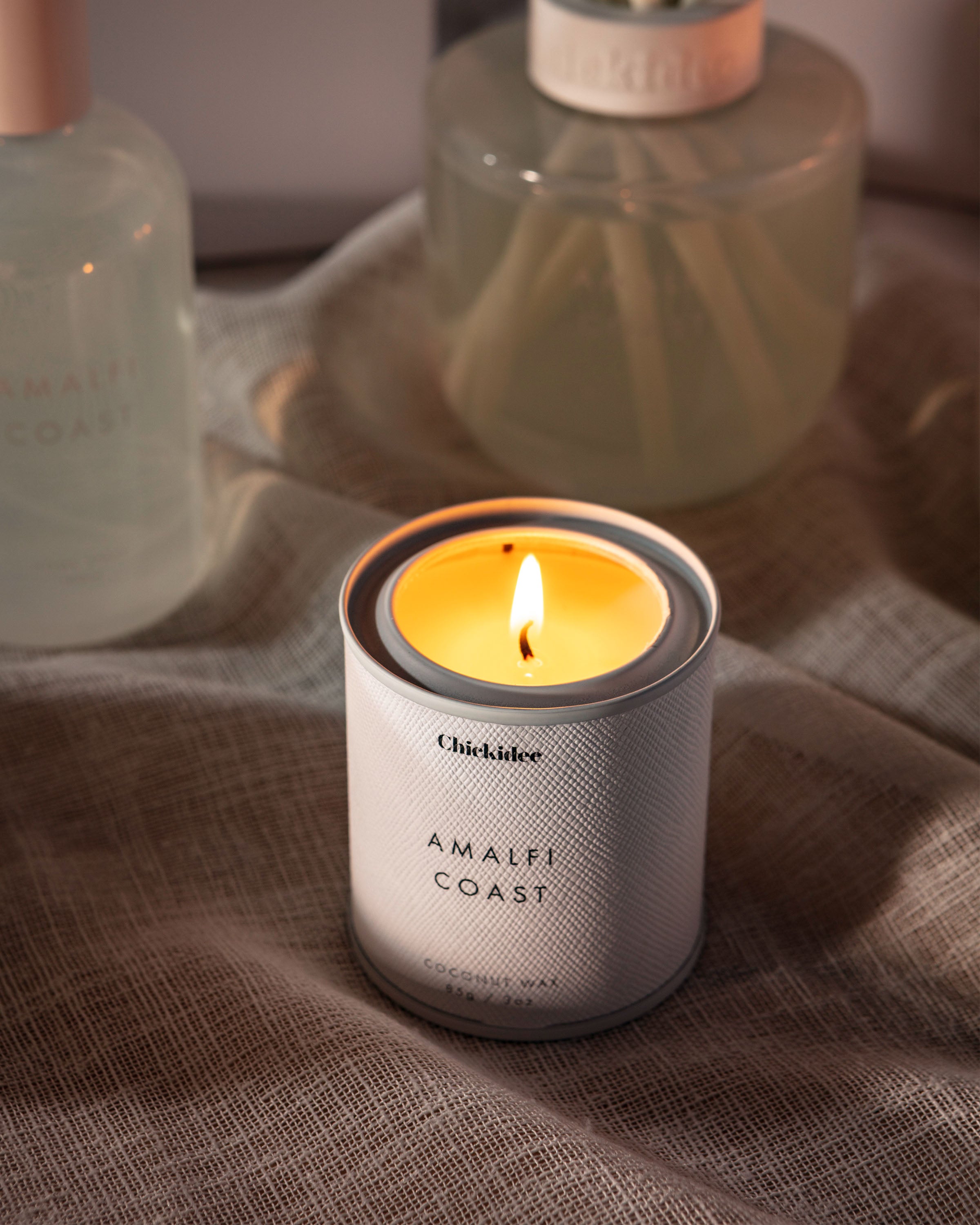 Our Chickidee Neutral Core Collection is designed with effortless style in mind. Our Amalfi Coast scent energises your space and captures the warm Mediterrean air drifting through citrus groves. Our Conscious Coconut Candles are crafted with 100% sustainably sourced coconut wax. Natural coconut wax is non-toxic and has a clean, even burn allowing the fragrance to beautifully infuse your living space.