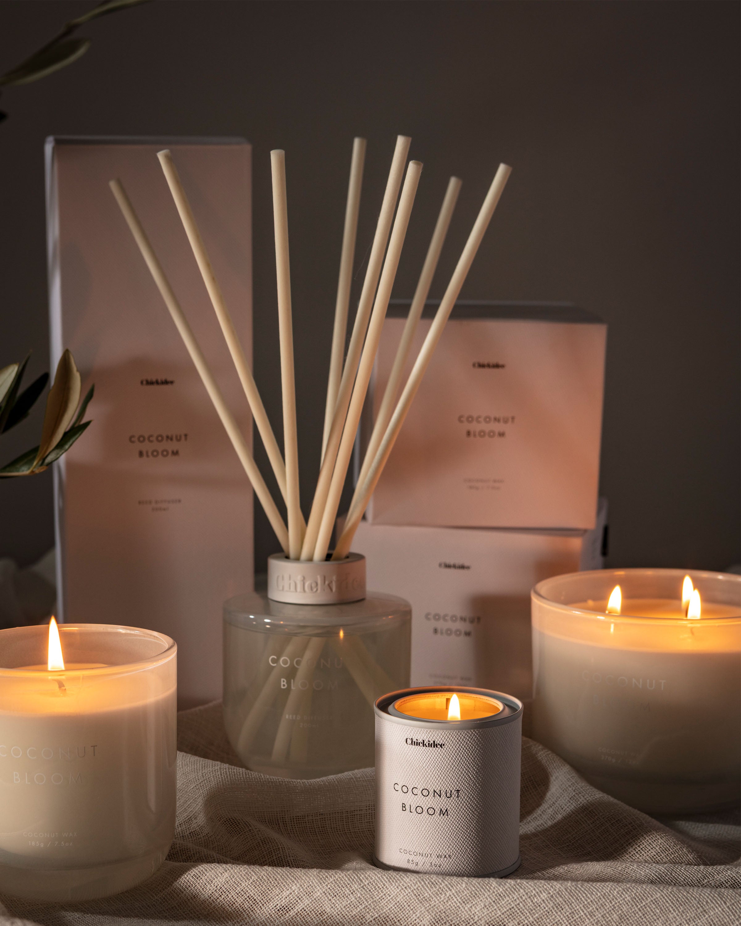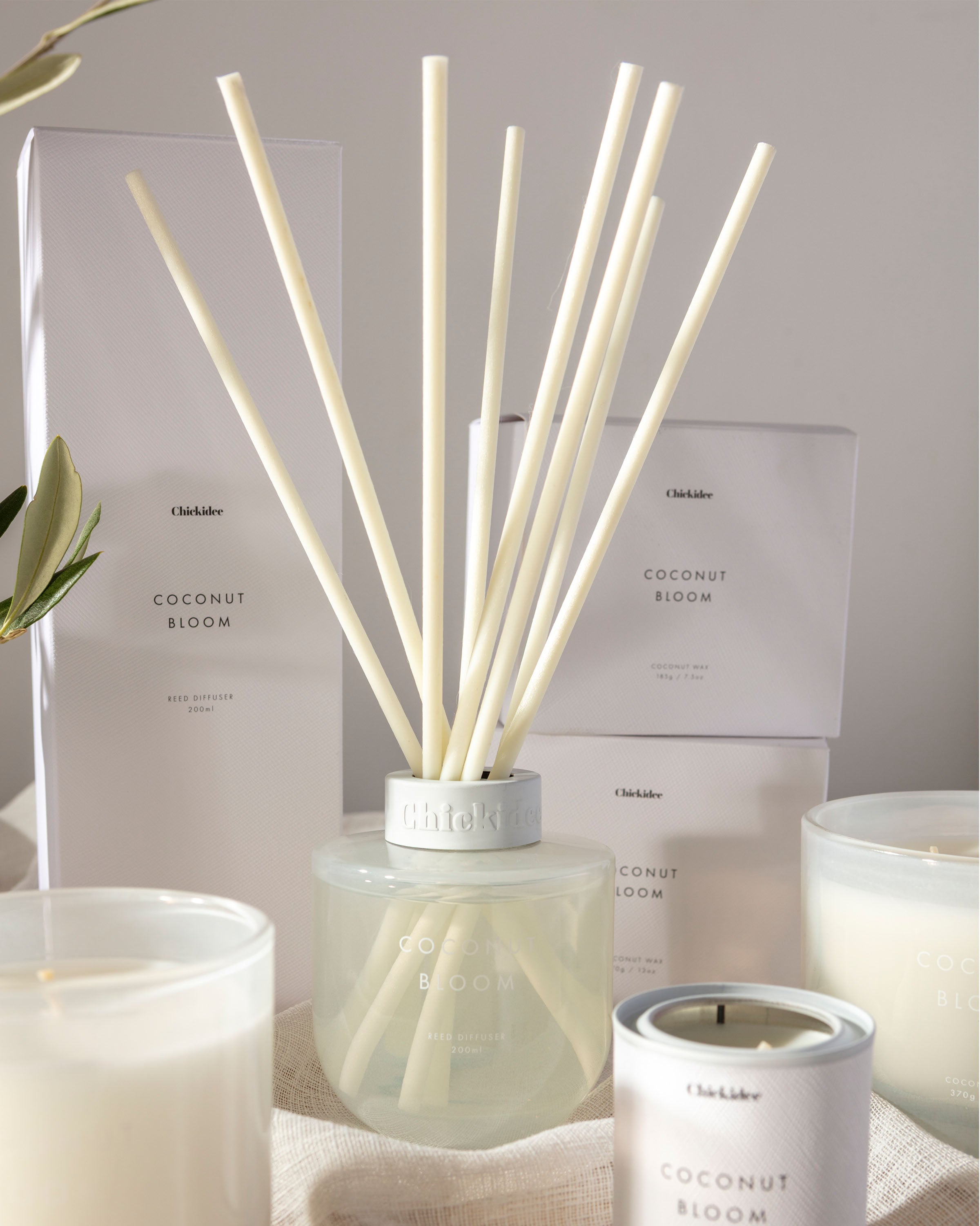 Our Chickidee Neutral Core Collection is designed with effortless style in mind. Its smooth opaque glass vessel blends seamlessly into every aesthetic and the scent throw transforms your space into a relaxing haven. Fruity but refined our Coconut Bloom offers a fresh scent that lingers through your space with purpose.