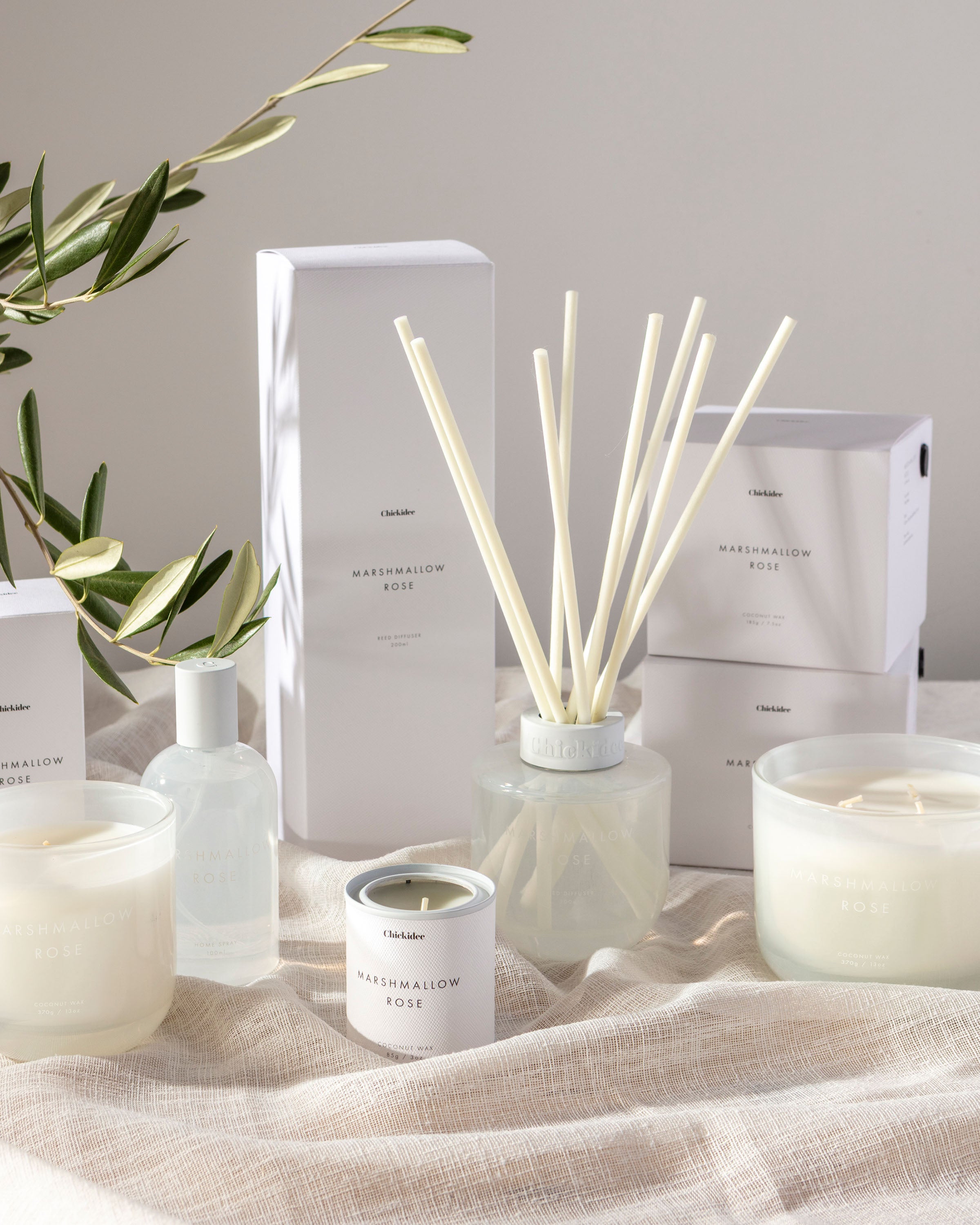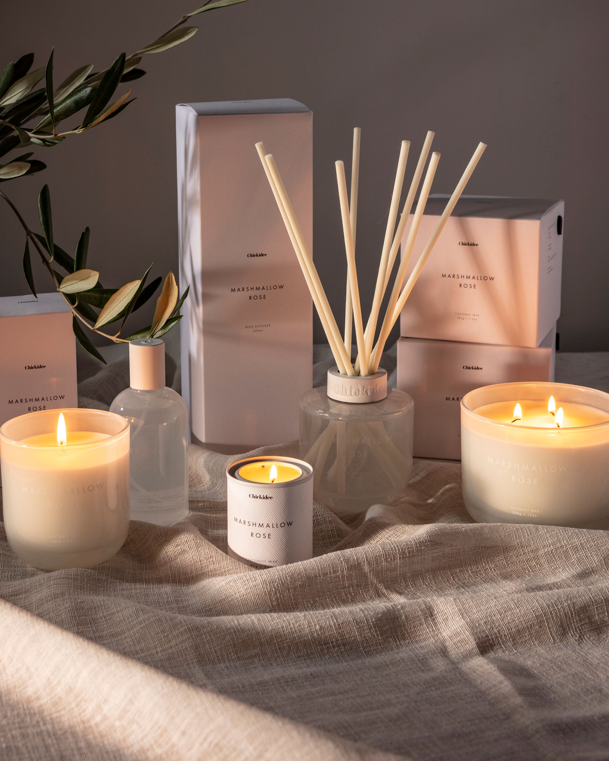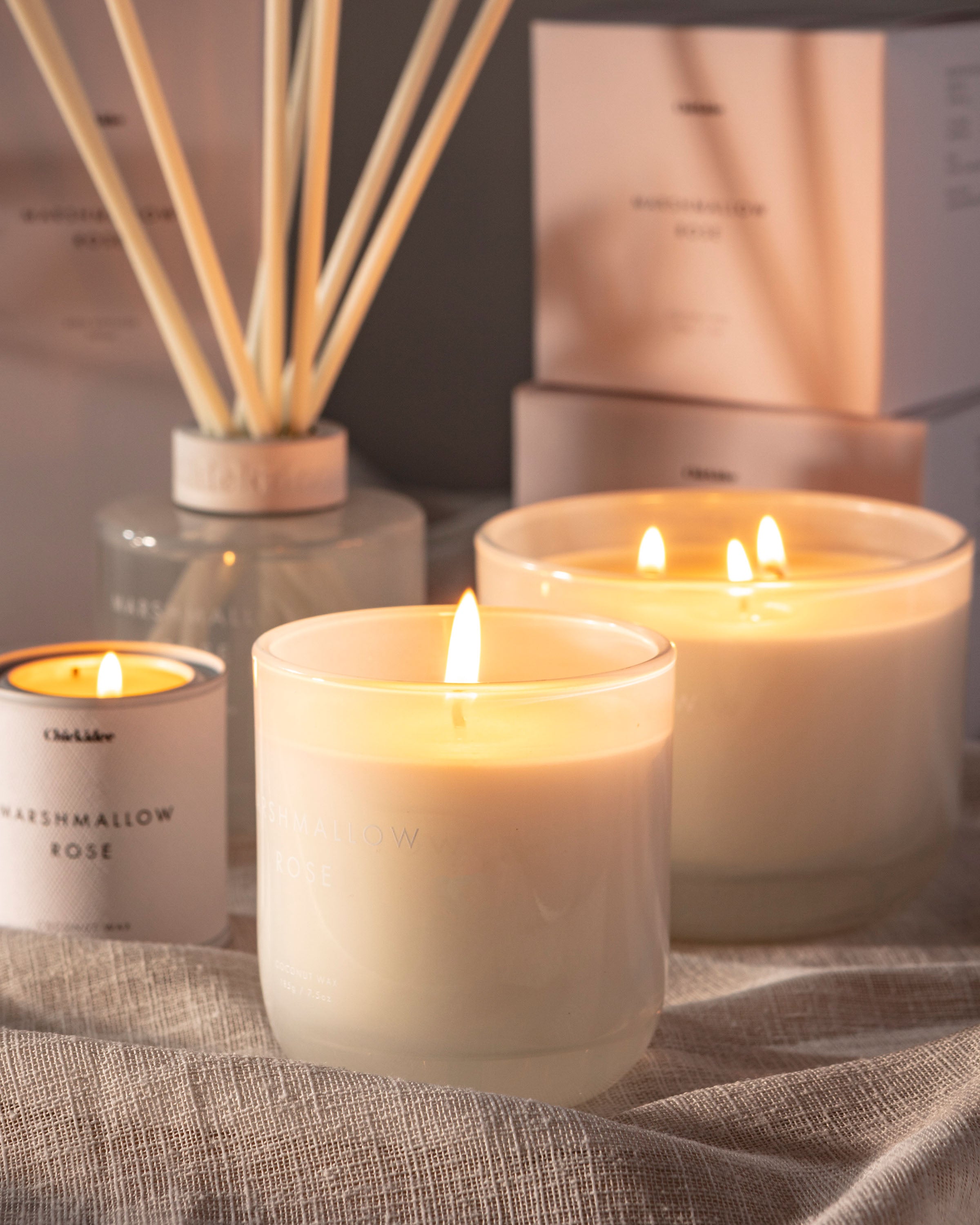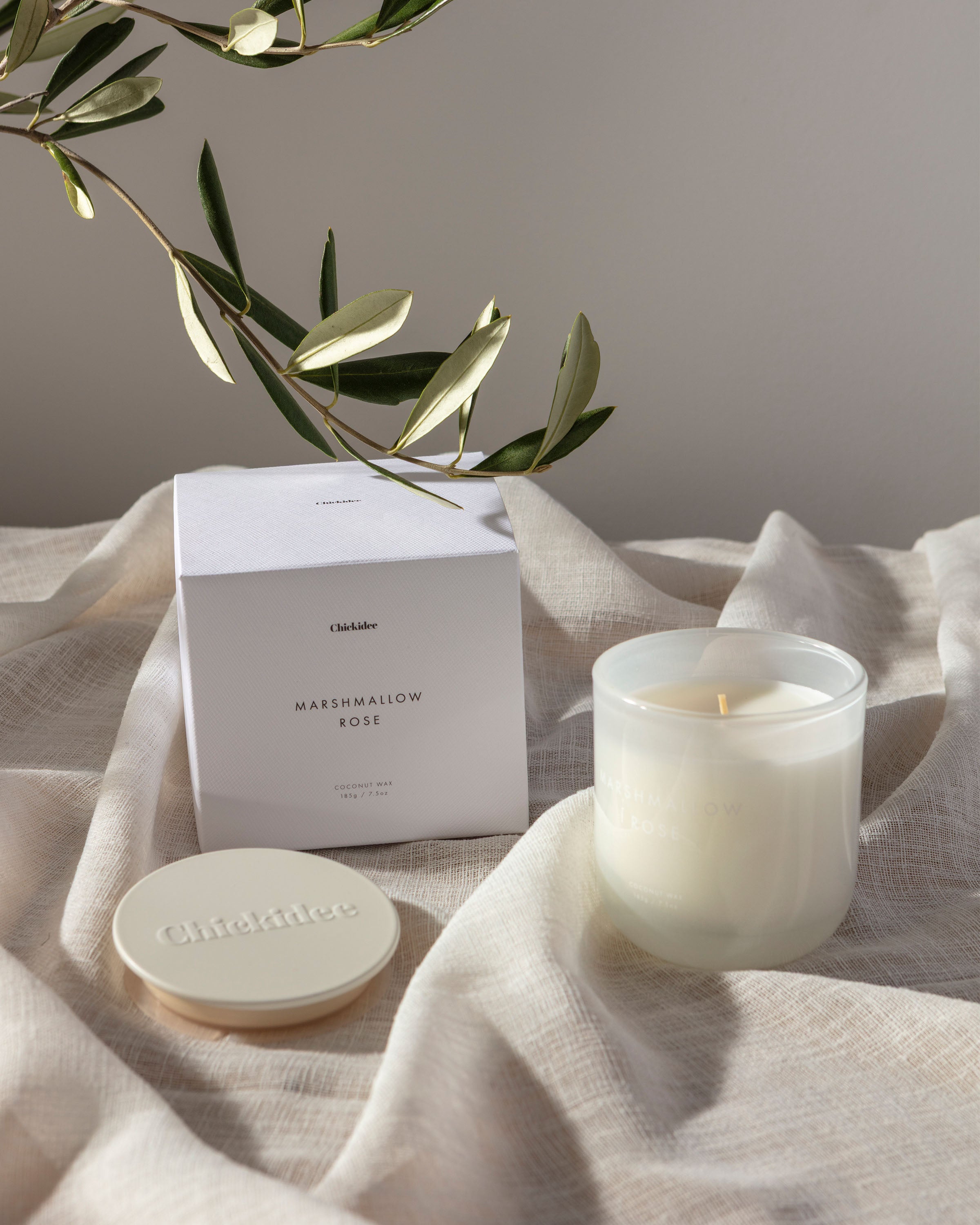 Our Chickidee Neutral Core Collection is designed with effortless style in mind. Its smooth, opaque glass vessel blends seamlessly into every aesthetic, and the scent throw transforms your space into a relaxing haven. The soft embrace of Rose and Musk, blended with subtle creamy vanilla makes the Marshmallow Rose sweet yet sophisticated. Crafted with three wicks for a fuller, even burn.
