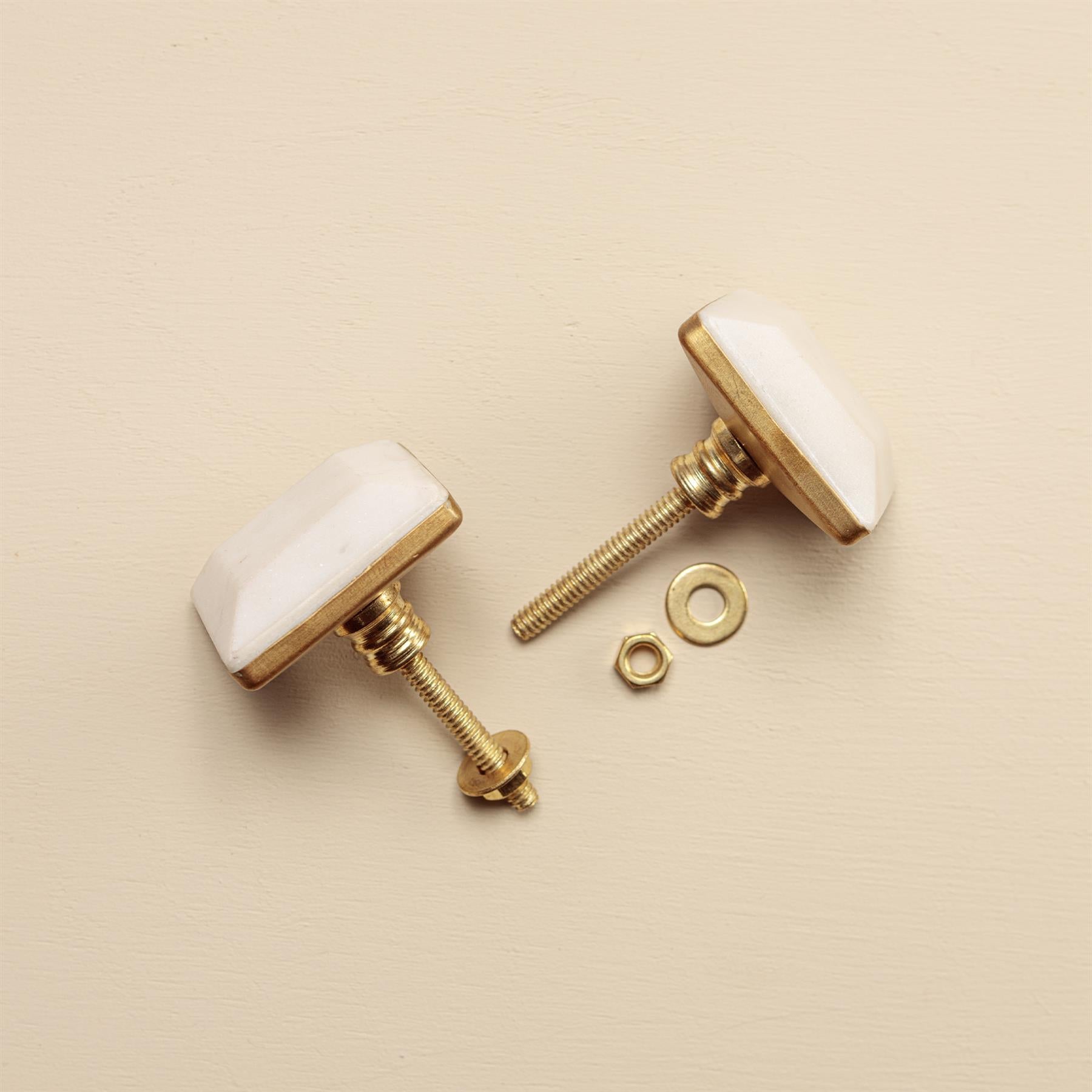 These square carved white marble knobs will elevate the detailing of your furniture.