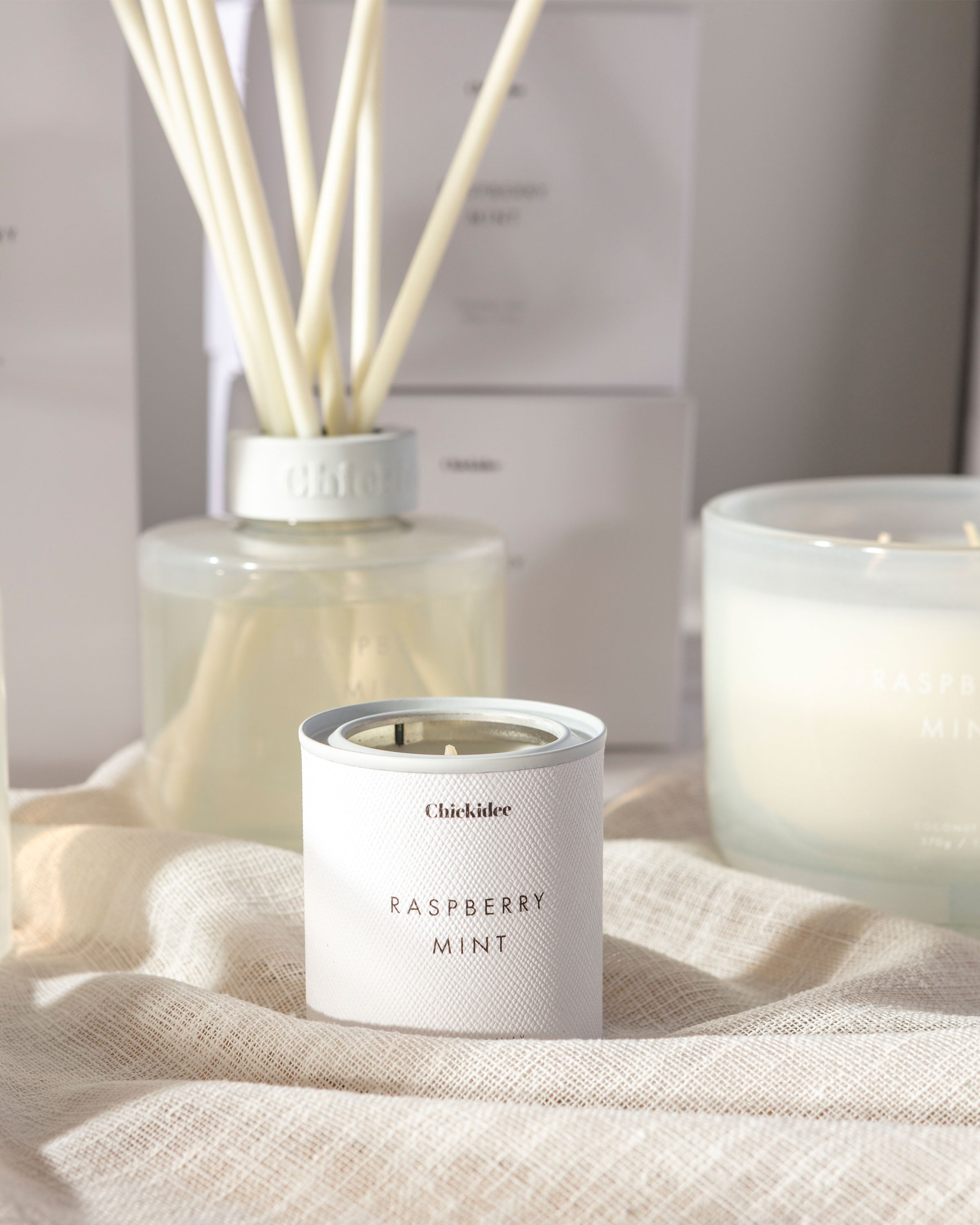 Our Chickidee Neutral Core Collection is designed with effortless style in mind. Its smooth opaque glass vessel blends seamlessly into every aesthetic and the scent throw transforms your space into a relaxing haven. Rich and jammy yet bursting with freshness the Raspberry Mint is the perfect blend of fruity sweetness.
