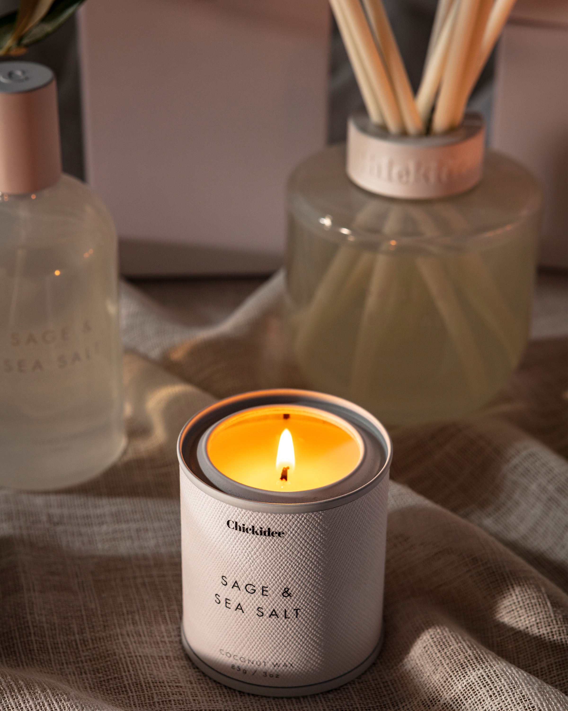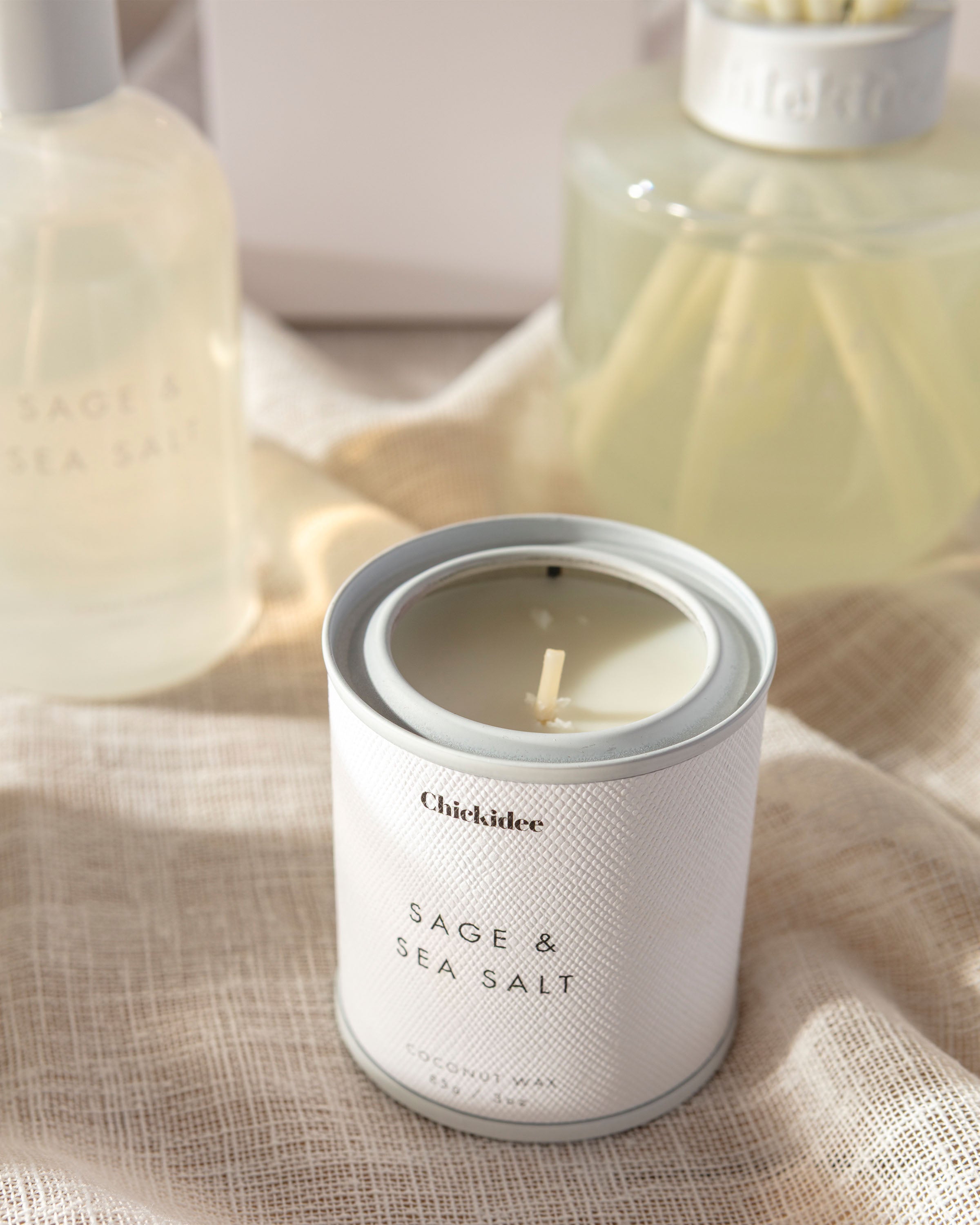 Our Chickidee Neutral Core Collection is designed with effortless style in mind. The luminous burst of lemon and bergamot, sharpened by aromatic sage creates a balanced blend which feels both airy and grounded.