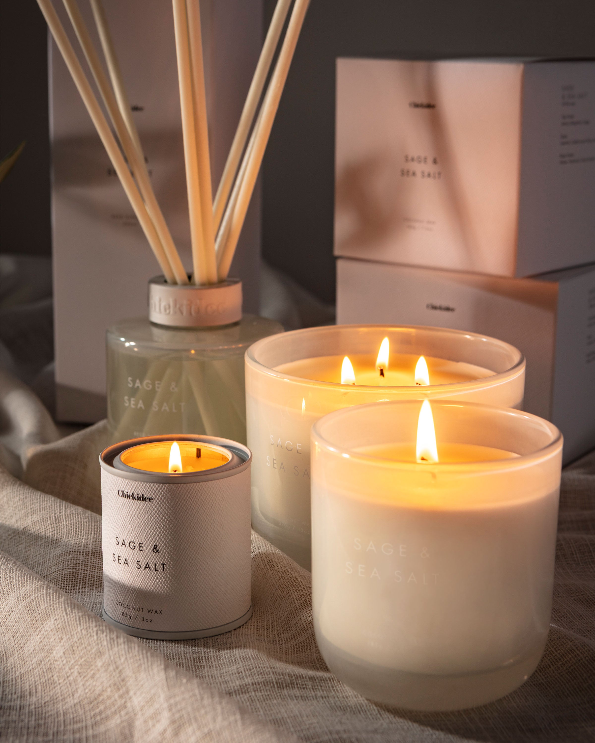Our Chickidee Neutral Core Collection is designed with effortless style in mind. Its smooth opaque glass vessel blends seamlessly into every aesthetic and the scent throw transforms your space into a relaxing haven. The luminous burst of lemon and bergamot, sharpened by aromatic sage creates a balanced blend which feels both airy and grounded.