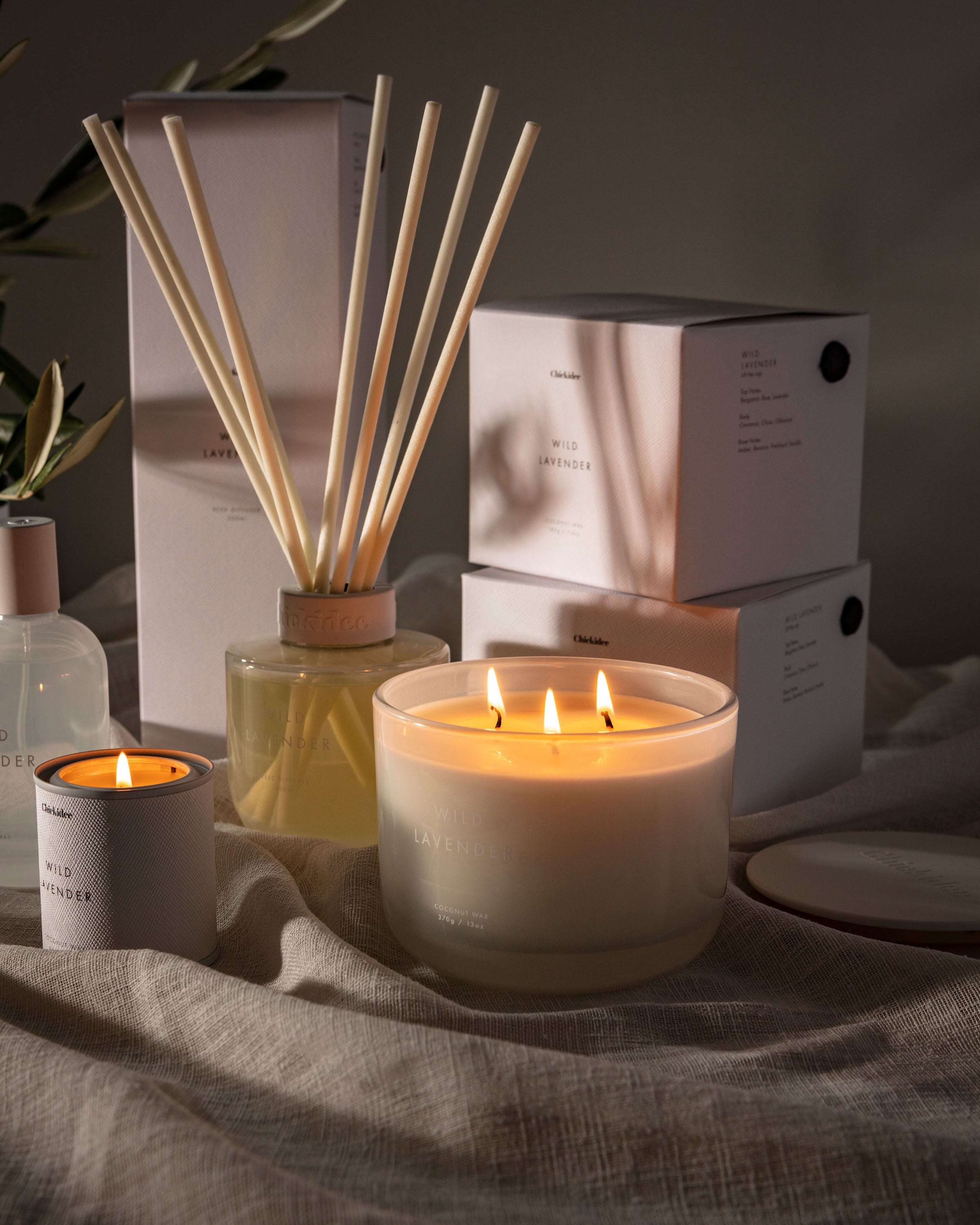 Our Chickidee Neutral Core Collection is designed with effortless style in mind. Its smooth opaque glass vessel blends seamlessly into every aesthetic and the scent throw transforms your space into a relaxing haven. The scent opens with fresh-cut wild lavender, slightly green and sun-warmed, evoking open fields and cool evening air. Crafted with three wicks for a fuller, even burn.
